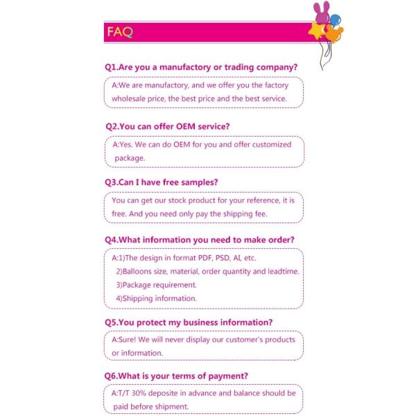 | Usage | Balloon Product can be used for birthday party, baby shower, anniversary, wedding, give away gift and banquets. Foil balloon can be customize designed, according to the type of function and the need of customer. |